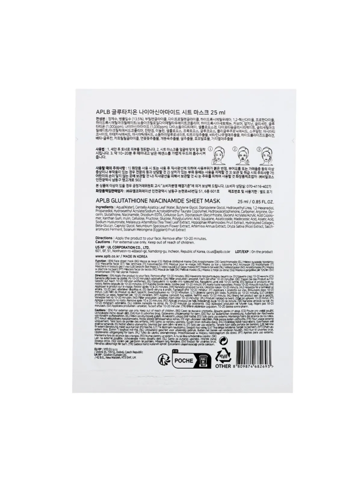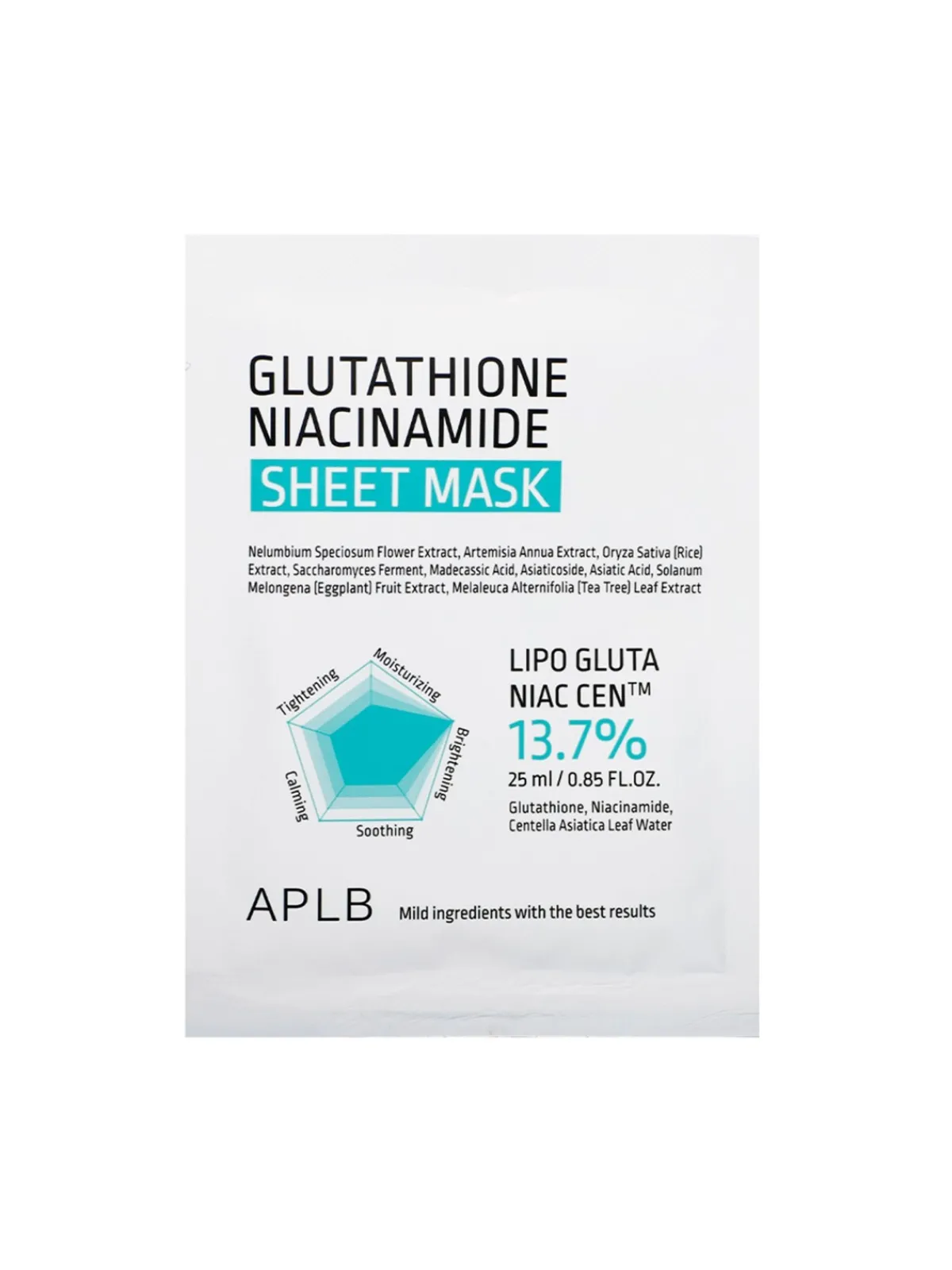 Mascarilla de celulosa ultrafina con glutatión, niacinamida y centella asiática que ilumina, calma e hidrata intensamente la piel cansada y apagada.