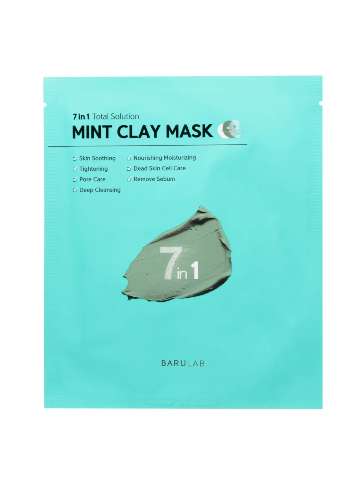 Lo mejor de los dos mundos: el poder exfoliante y purificante de la arcilla, en el cómodo formato de mascarilla de tejido. Si te encantan los resultados de las mascarillas de arcilla pero no tienes tiempo para el rutial completo, 7-in-1 Total Solution Mint Clay Mask con arcilla y extracto de menta de Barulab te lo pone súper fácil.