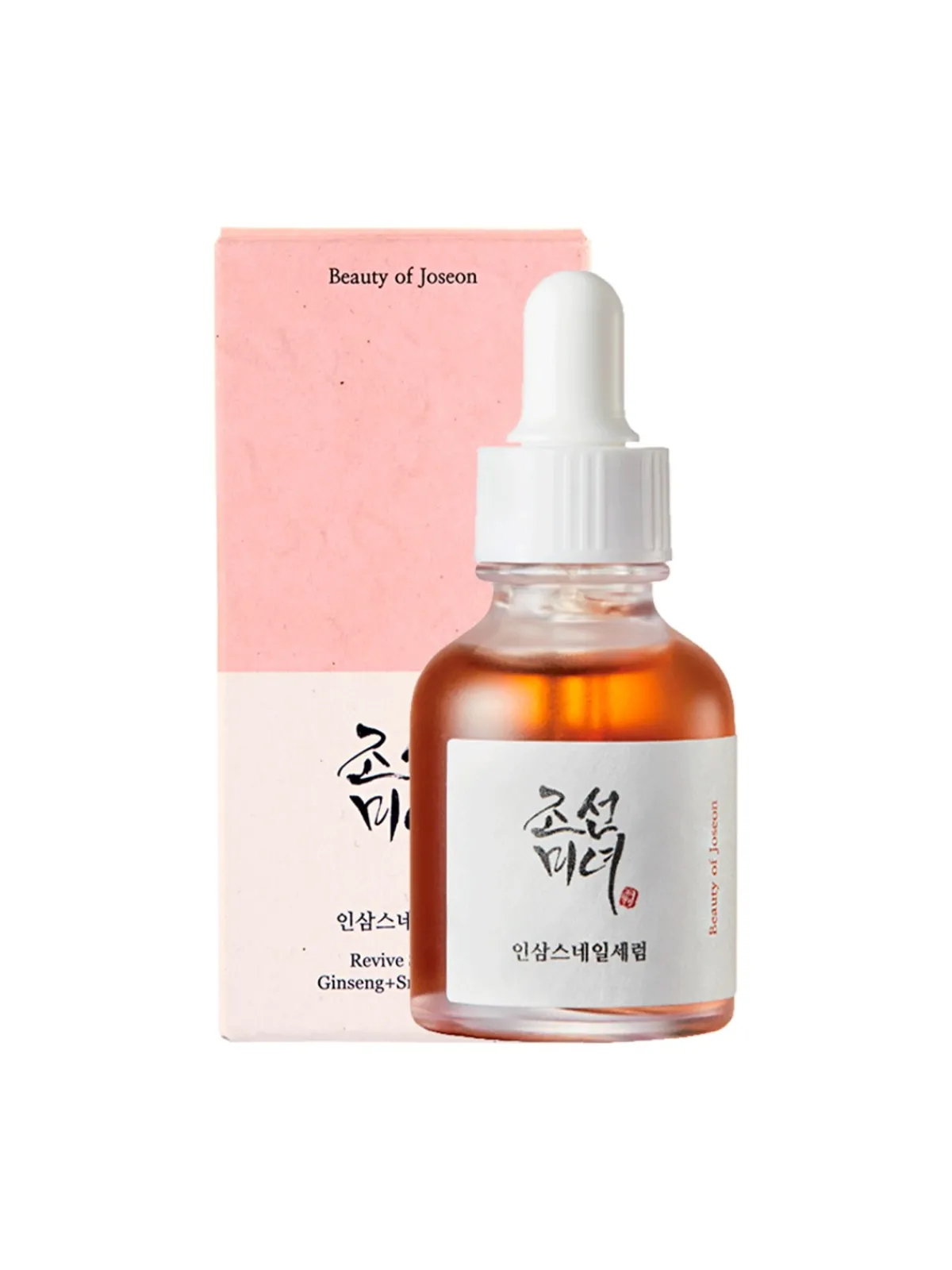 Si quieres devolver la vitalidad a tu rostro, ¡estás en el lugar adecuado! El Revive Serum: Ginseng + Snail Mucin de Beauty of Joseon cuenta con ginseng y mucina de caracol, claves para una piel más firme y elástica.