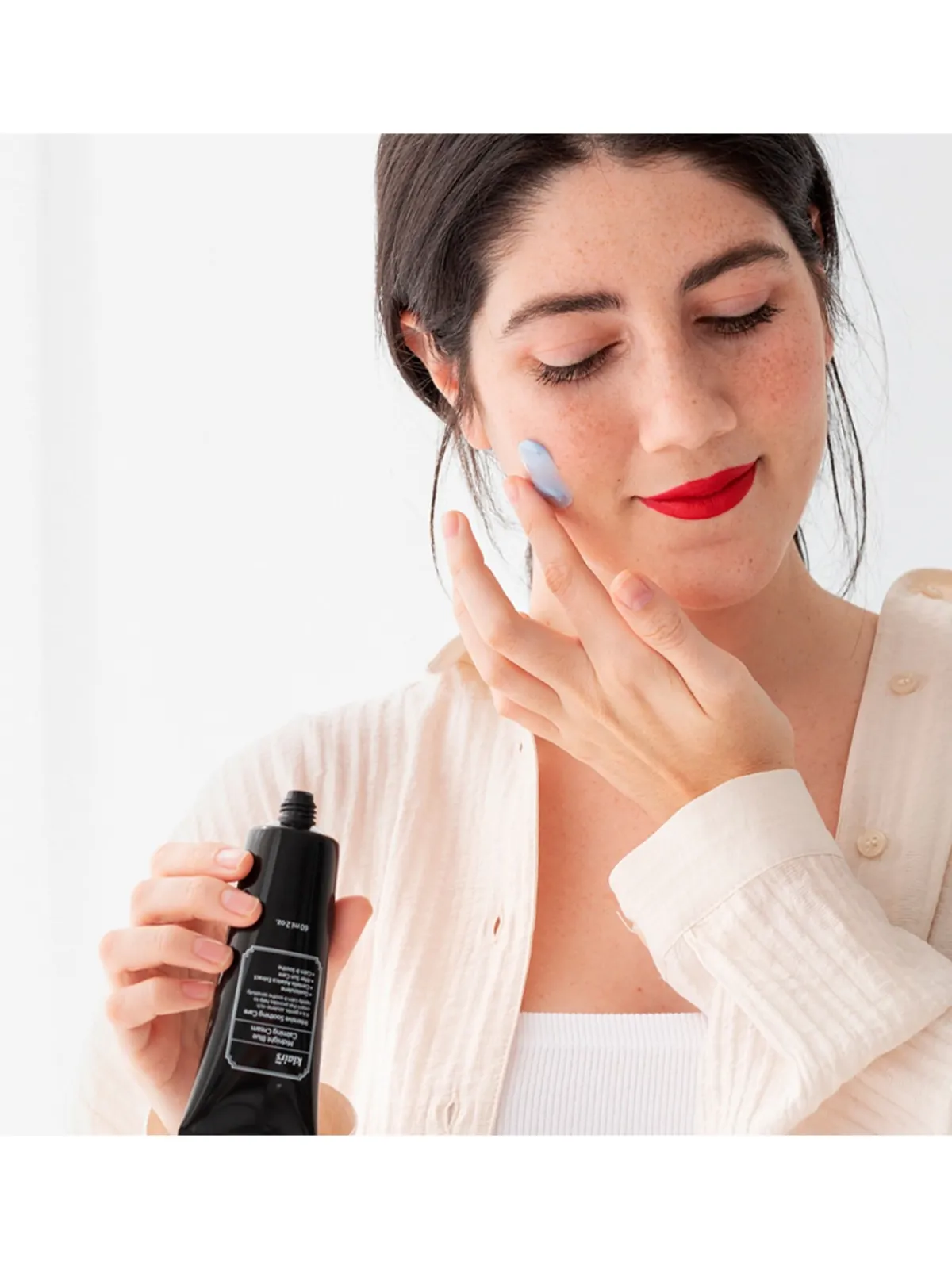 Si la hidratación no es suficiente para tratar tu piel sensible, aquí te presentamos tu nuevo tratamiento con nombre (y resultados) de película. Midnight Blue Calming Cream protege la piel de las irritaciones y del estrés. Nos gusta su textura, sus beneficios, sus ingredientes y nos encanta su misterioso color azul que, para la sorpresa de muchos – entre los que nos incluimos-, no es debido a ningún tipo de colorante artificial, sino a uno de sus ingredientes: el guaiazuleno, un ingrediente vegetal que se extrae de la camomila y que tiene un color azulado o violeta oscuro. Entre sus propiedades, destaca su efecto calmante ante inflamaciones o daños de la piel y su efecto regenerador. Contiene también centella asiática, un ingrediente antioxidante que también previene la irritación y ayuda a la renovación celular. Esta crema es apta para todo tipo de pieles y puede utilizarse tanto por la mañana como por la noche. Tiene una función calmante y reparadora, por eso se recomienda su uso después de una limpieza facial, de la exposición solar o después del afeitado o depilación.