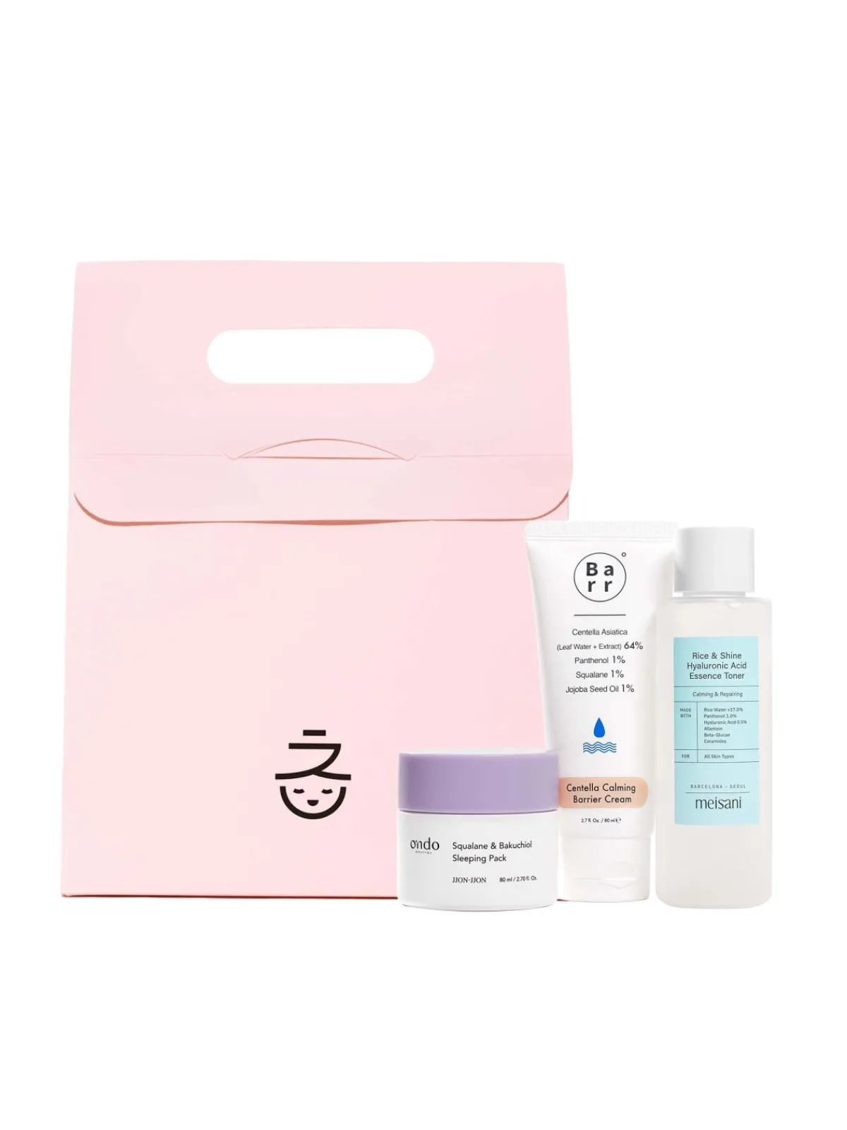 Pack de productos regeneradores para apoyar la función barrera de la piel. Incluye tónico esencia de Meisani, crema nutritiva de Barr y mascarilla de noche con bakuchiol de Ondo Beauty 36.5