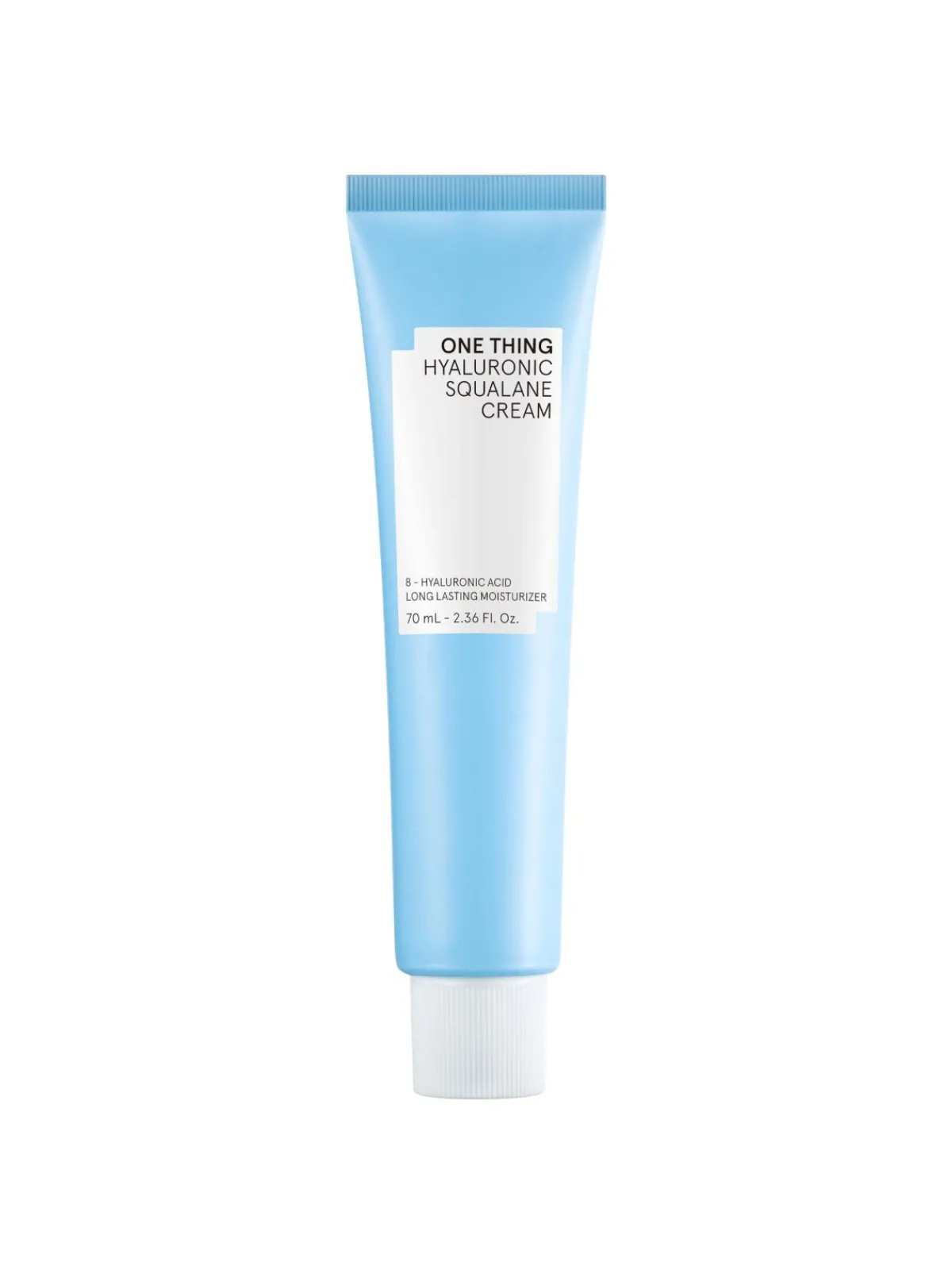 Hyaluronic Squalane Cream de ONE THING hidrata intensamente con 8 tipos de ácido hialurónico y escualano vegetal. Textura gel ligera, no pegajosa.